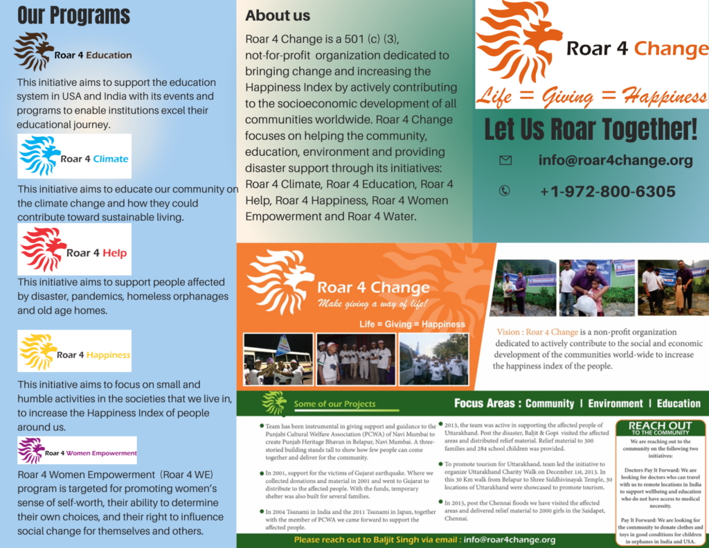 • Roar 4 Change USA will serve as the exclusive operational arm of Guru Nanak Global Foundation in the United States.